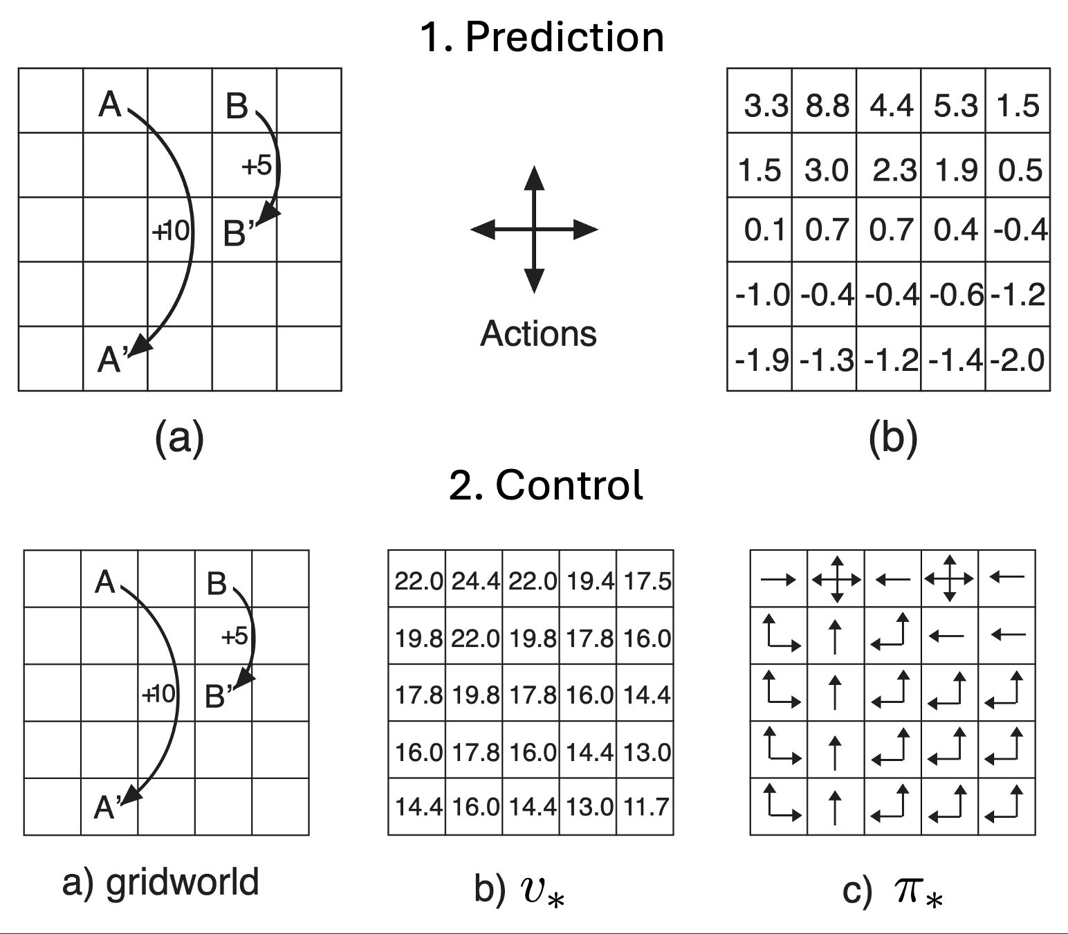 - Control: What’s the optimal behavior on the grid if I am in a given state? What’s the value function if I follow the optimal behavior?